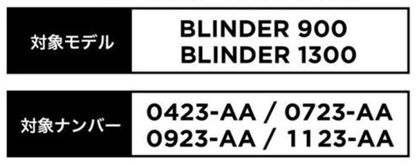 対象となる製品とバッチNoは下記2モデルとなり、BLINDER 600は対象外となります。