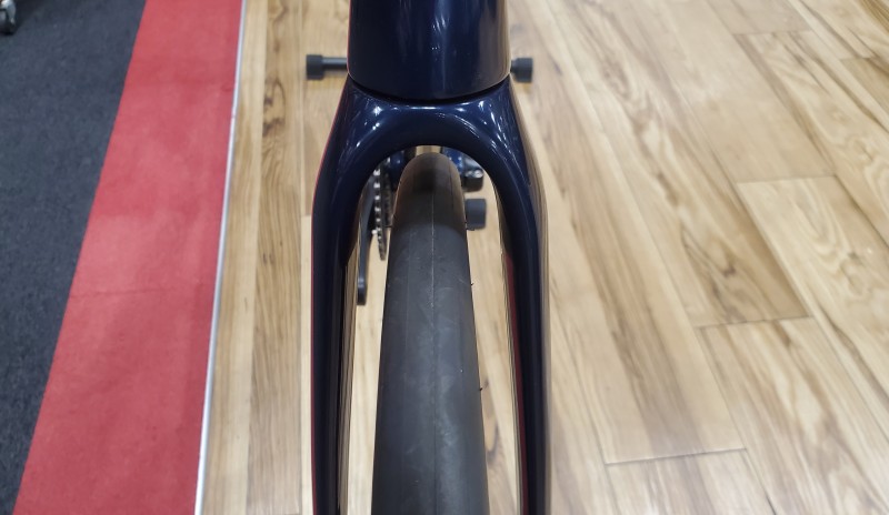 ロングライド向きモデルの場合はレーシングモデルと比較して太めのタイヤが履ける傾向にあります!RE8も例に漏れず広めのタイヤクリアランスを確保、完成車標準タイヤで700×32C、メーカー公表の最大クリアランス表記は無いのですが実寸的に35Cとかは履けそうです!