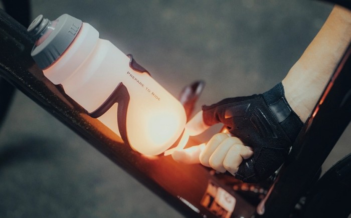 ボトルケージの下部にLEDライトを搭載し、ボトル全体を発光させることで、夜間や暗い環境での視認性を高めます。