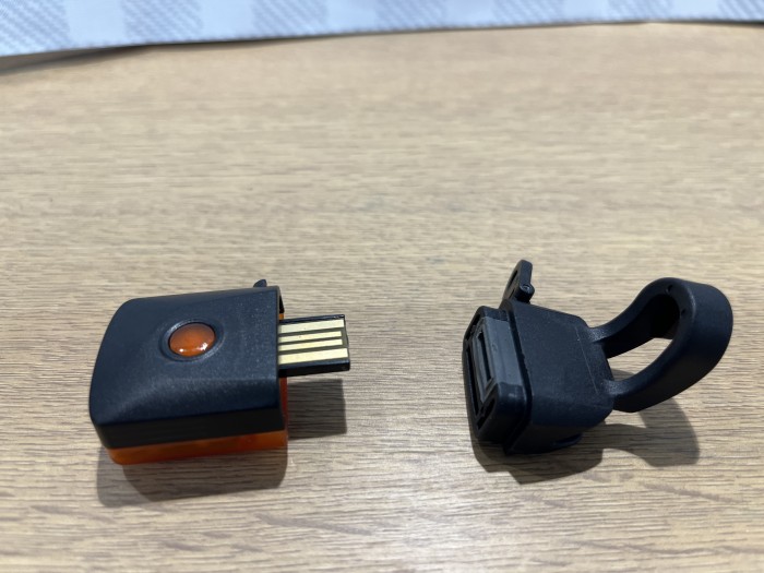 充電はLEDライト部分のストッパーを外して引っこ抜くとUSB端子が出てきますので、そのまま充電器やPCのUSBポートに差し込む方式となっています。