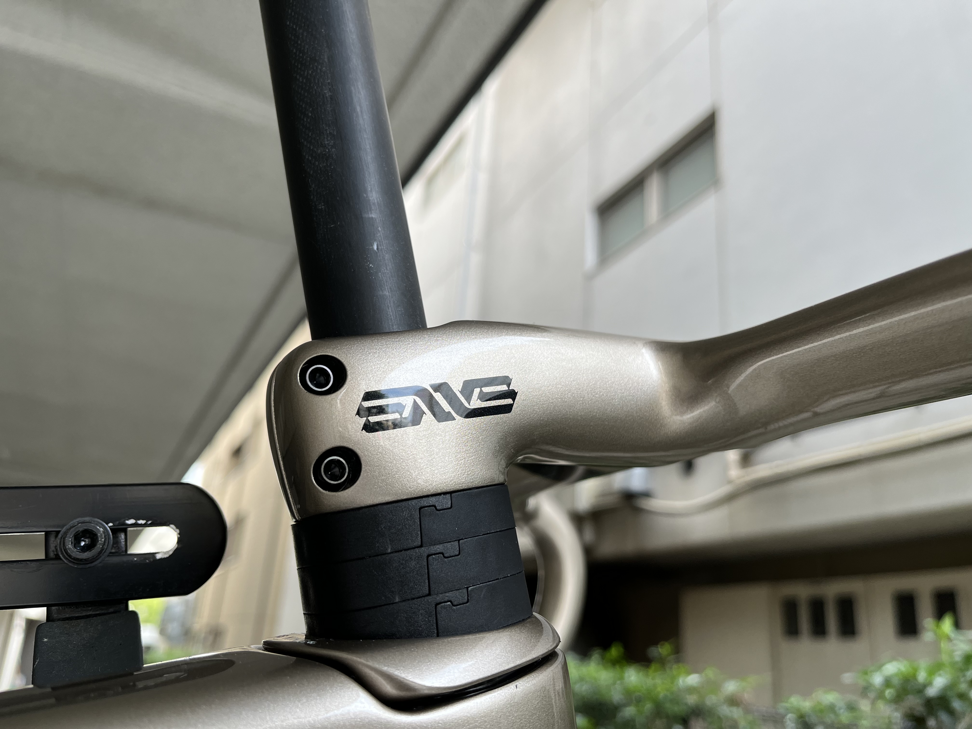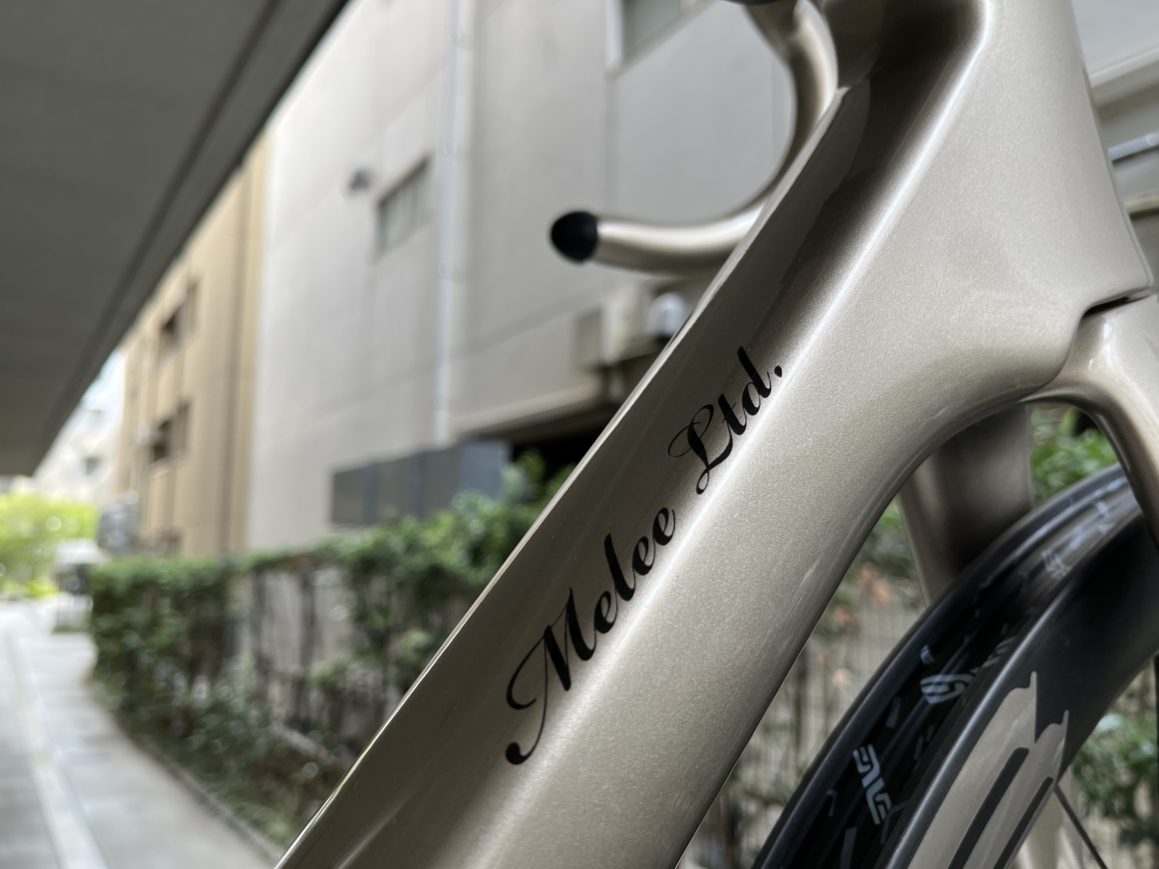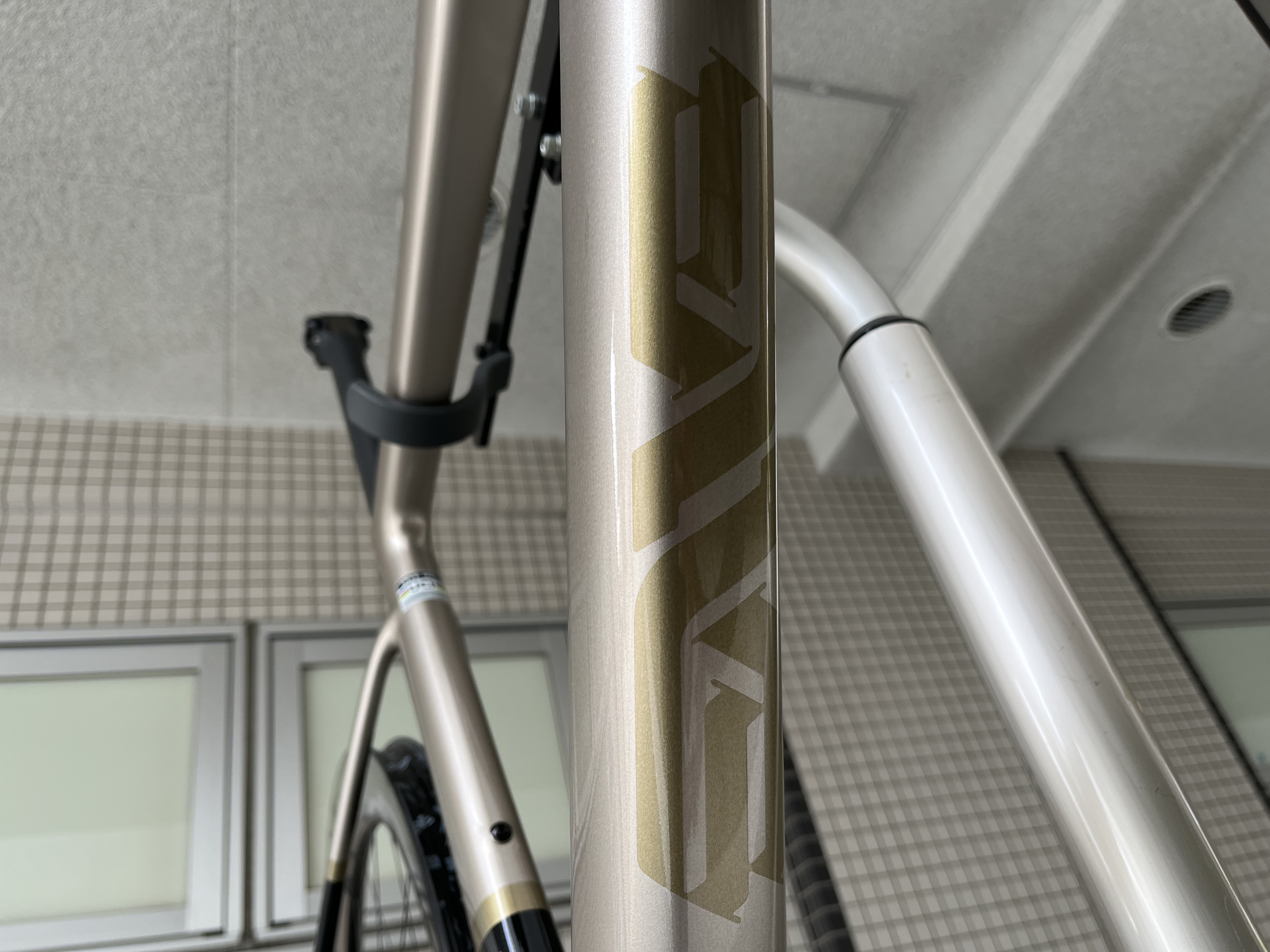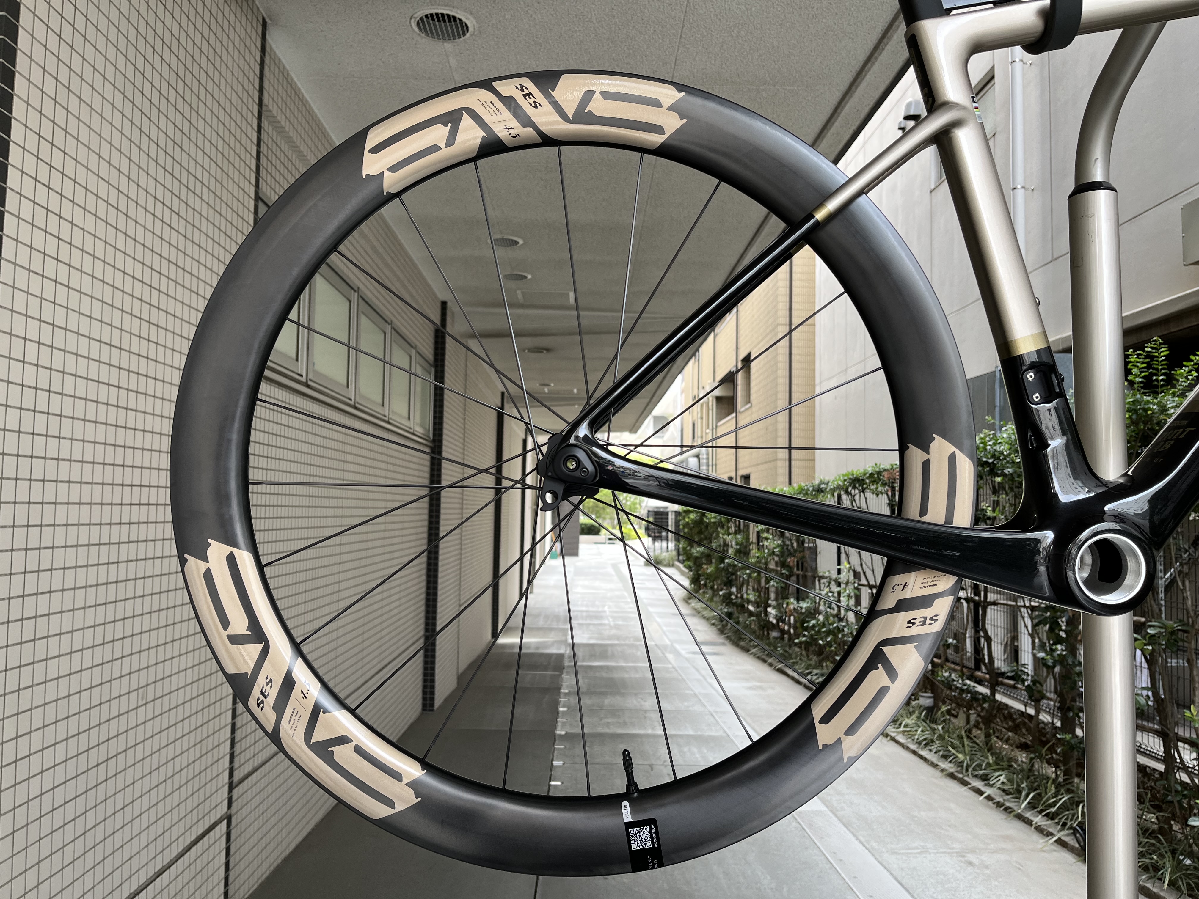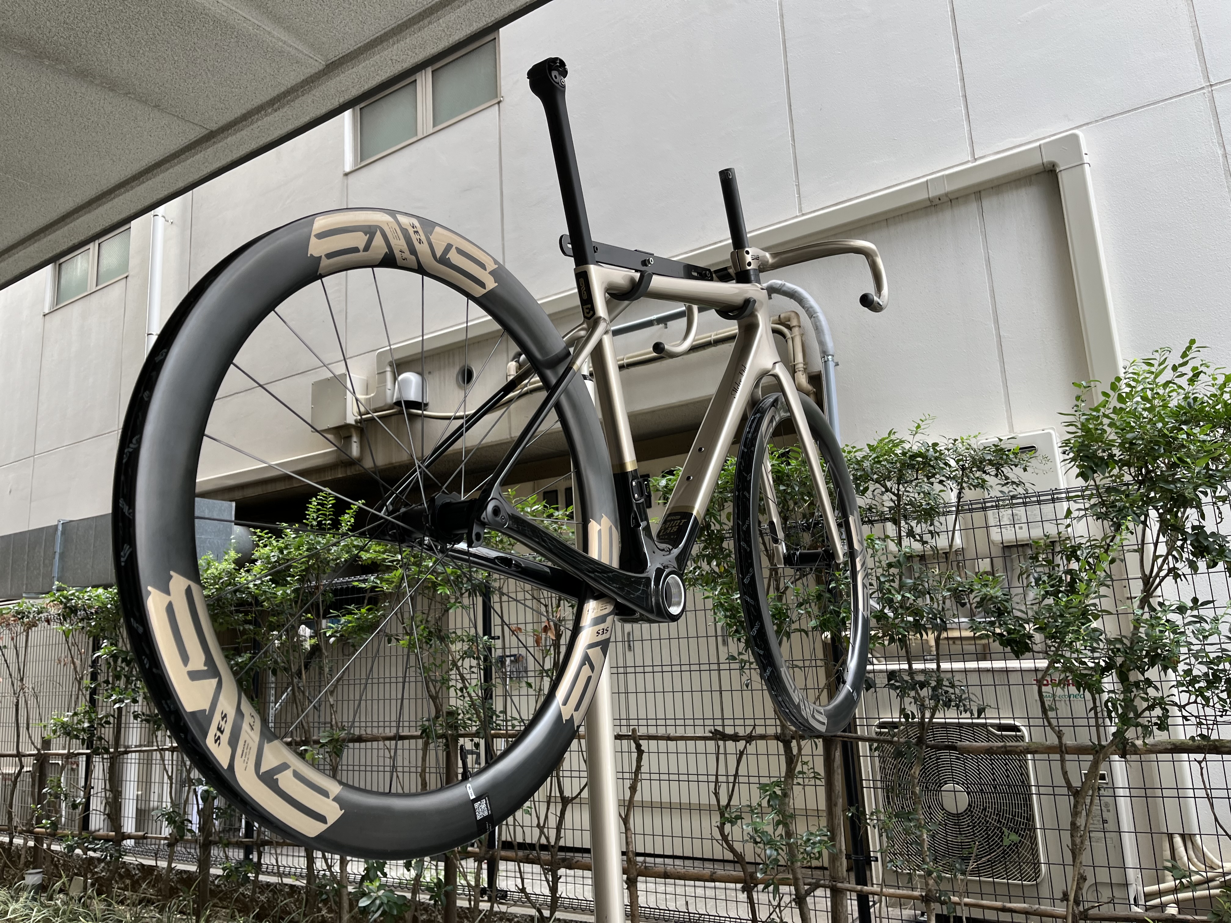 SES4.5ホイールのロゴとSES AERO PROハンドルはいずれもフレームと同じくシャンパンゴールドで統一されています。