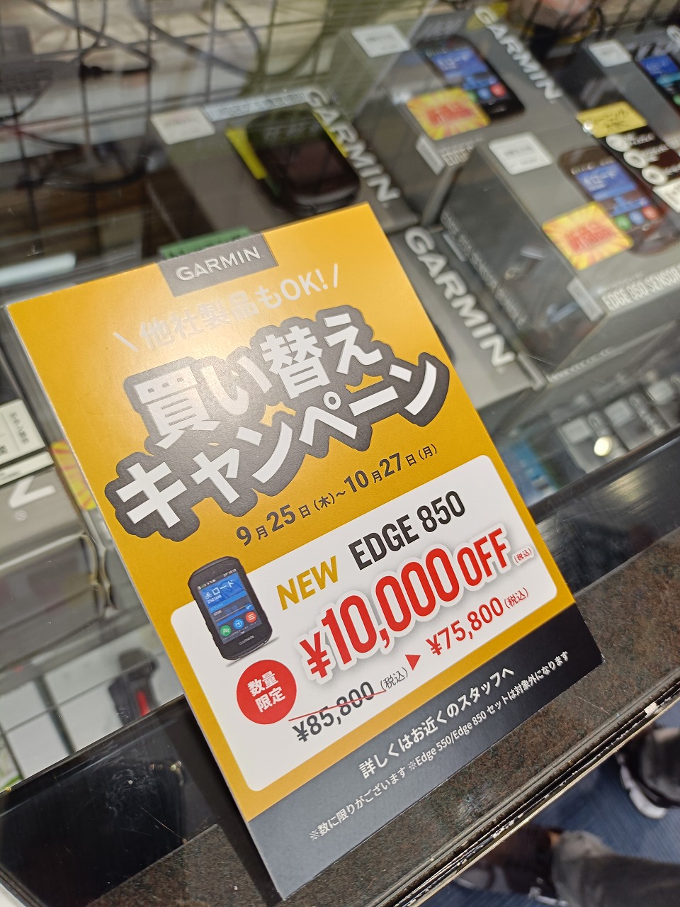 EDGE850購入時に今までご使用のサイクルコンピューターを店頭でご提示頂くと¥10,000お値引きになります!