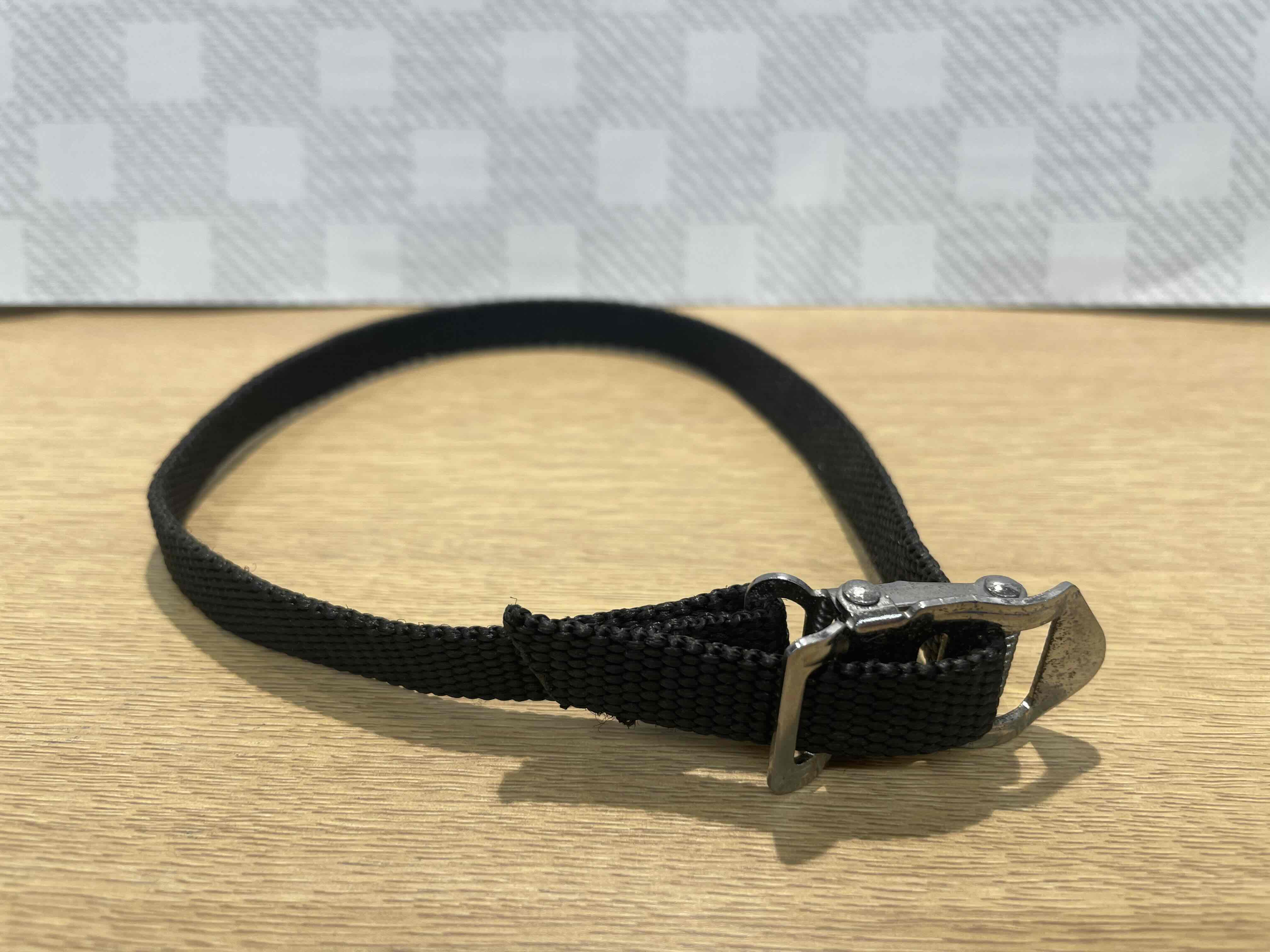 まだビンディングペダルが無かった時代にペダルにトウクリップと共に使っていたストラップです。