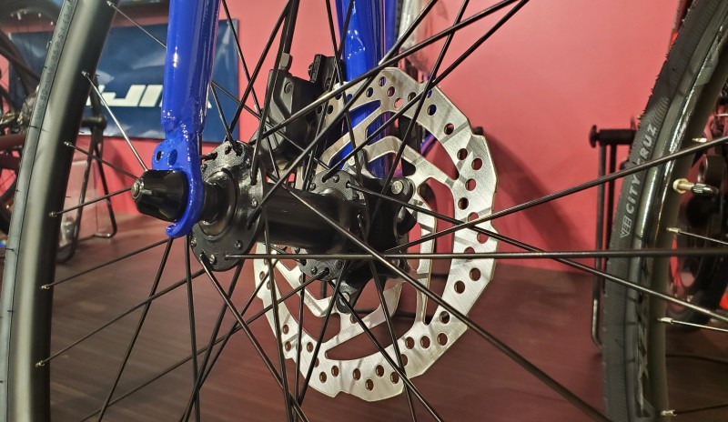 DISCブレーキ化やそれに伴うグリップ力向上目的のタイヤのワイド化などとのバランスを取るためにフレームの剛性アップ果たしています!