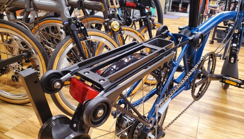 末尾R表記は荷台(ラック)有りモデルです!名前の通り荷台としても使えますが、荷台有りの場合の最大の特徴は折り畳み状態で転がすことができるところです!