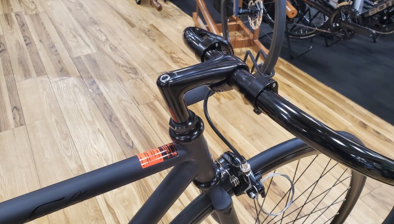 FUJIを代表するシングルスピードモデルにTRACK ARCVというモデルもありますがそちらはアルミフレームだったりハンドル周りのパーツの規格が現代的、一方FEATHERはクロモリフレームだったりハンドル周りのパーツ規格が古い規格を採用だったりクラシックな造りになっています!