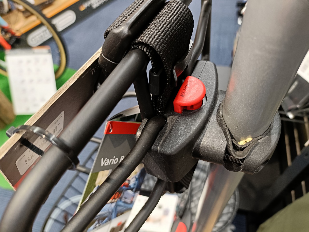 アダプタの赤いボタンを押すだけでラックが自転車から離れます。
