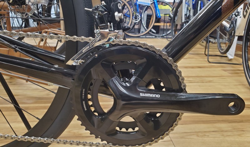 今回ご紹介させていただいている入荷車体は年式2023年モデルのため、リア11段変速の105となっています!