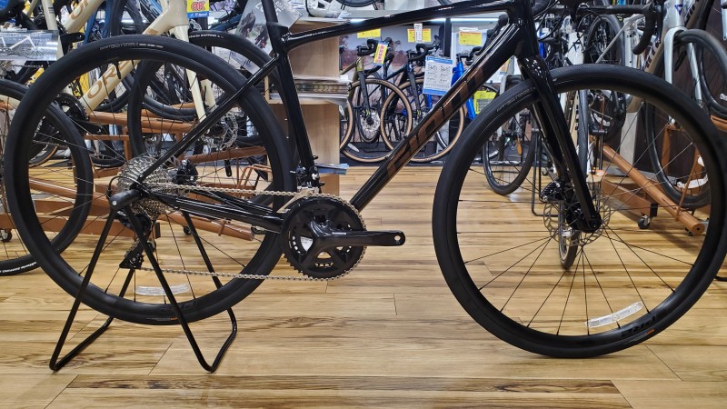 ロードバイクといえばドロップハンドル!前傾姿勢をとって乗る自転車なのですが、モデルによって同じようなサイズ感でも前傾度合が異なります!レース向きモデルなら前傾姿勢が深めだったり、ロングライドモデルなら前傾姿勢が浅めだったり(一部例外有り)、初めてのロードバイクであれば前傾姿勢は浅めのモデルの方が上半身の負担が少なく済むためビギナー向きと言えるでしょう!CONTEND ARは後者の前傾姿勢が浅めのモデルのためビギナー向きと言えるでしょう!