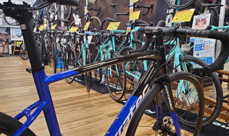 DOLOMITI DISCの立ち位置は上位グレードのアルミロードバイク、カーボンロードバイクの価格帯は手が届かないけど入門グレードよりもスペックの高いロードバイクが欲しい!という方にオススメしたいモデルです♪