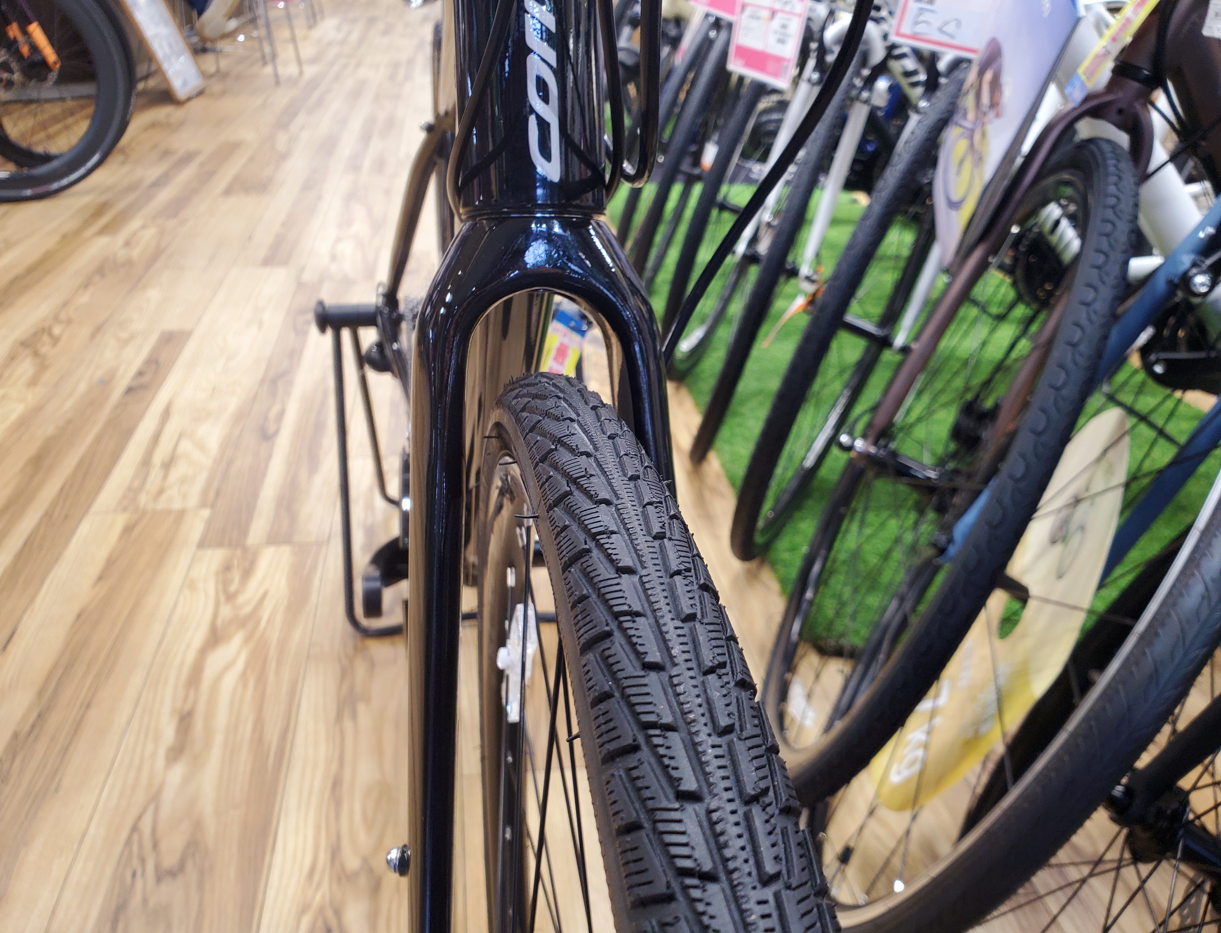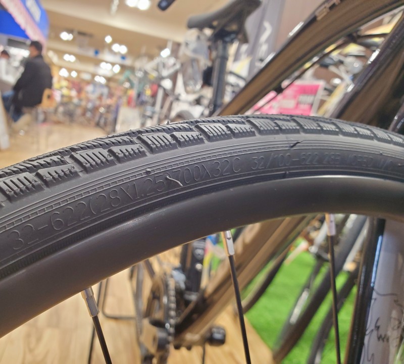 タイヤサイズは700×32C、クロスバイクのカテゴリーにおいて太くもなく細くもなく、スタンダード幅のタイヤを採用。