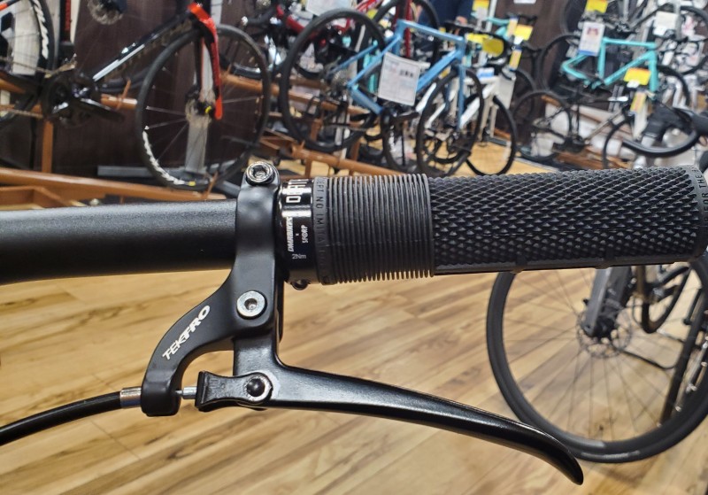 ピストやシングルスピードのカスタムに人気のブレーキレバーですが、キャリパーブレーキ対応の引き量のためフラットバーロードにも使えますよ!