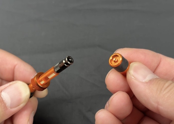 新型モデルには、キャップの頭にバルブの先端を押し込むことができるピンがあります。