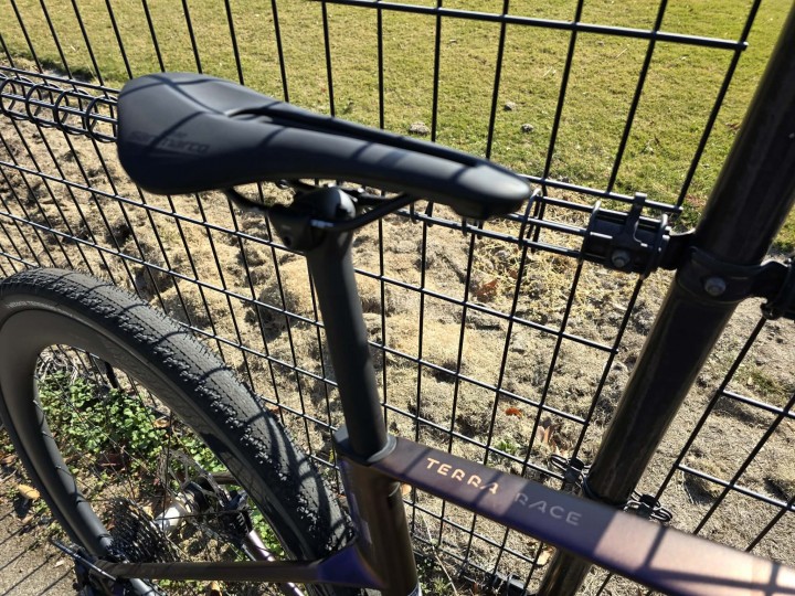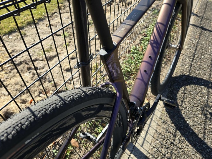 フレームの造形はグラベルレースに向けたエアロ設計になっています。