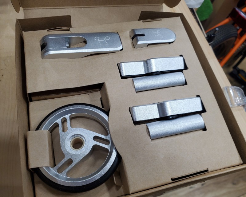 昔はBROMPTONを完成車状態から個性を出そうとするにはBROOKSのサドルや社外品のBROMPTON用カスタムパーツでドレスアップするしかなかったのですが、ここ最近はBROMPTON純正でグレードアップ用としてアルミを用いた軽量パーツ、そしてそのパーツ類もカラーラインナップが豊富で個性が出しやすくなりました!