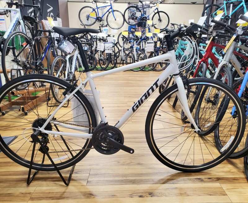 ひと昔前はクロスバイク=700×28Cタイヤ(ロードは700×23Cもしくは700×25C)がポピュラーでしたが時代がすすみタイヤの太さが太くなっていっています!700×35Cや38Cなんて太さのタイヤを搭載したクロスバイクも珍しくありません!時代の流れに沿ってGIANTのESCAPE R3も700×28Cではなく32Cとなっていますが極端に太くなっているわけでもありませんね!