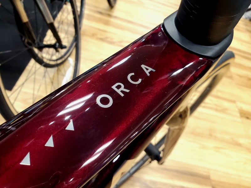 フレームの形状は特徴的で、非常に薄いトップチューブが ORCA と一目で判別できる特徴です。