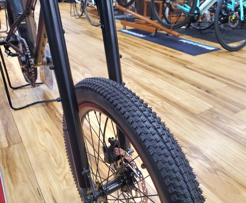 なんといっても目をひくのが大迫力のダブルクラウンロングリジッドフォーク、マウンテンバイクのような出で立ち、それ以上にハーレーダビッドソンのような出で立ちでもありますね!