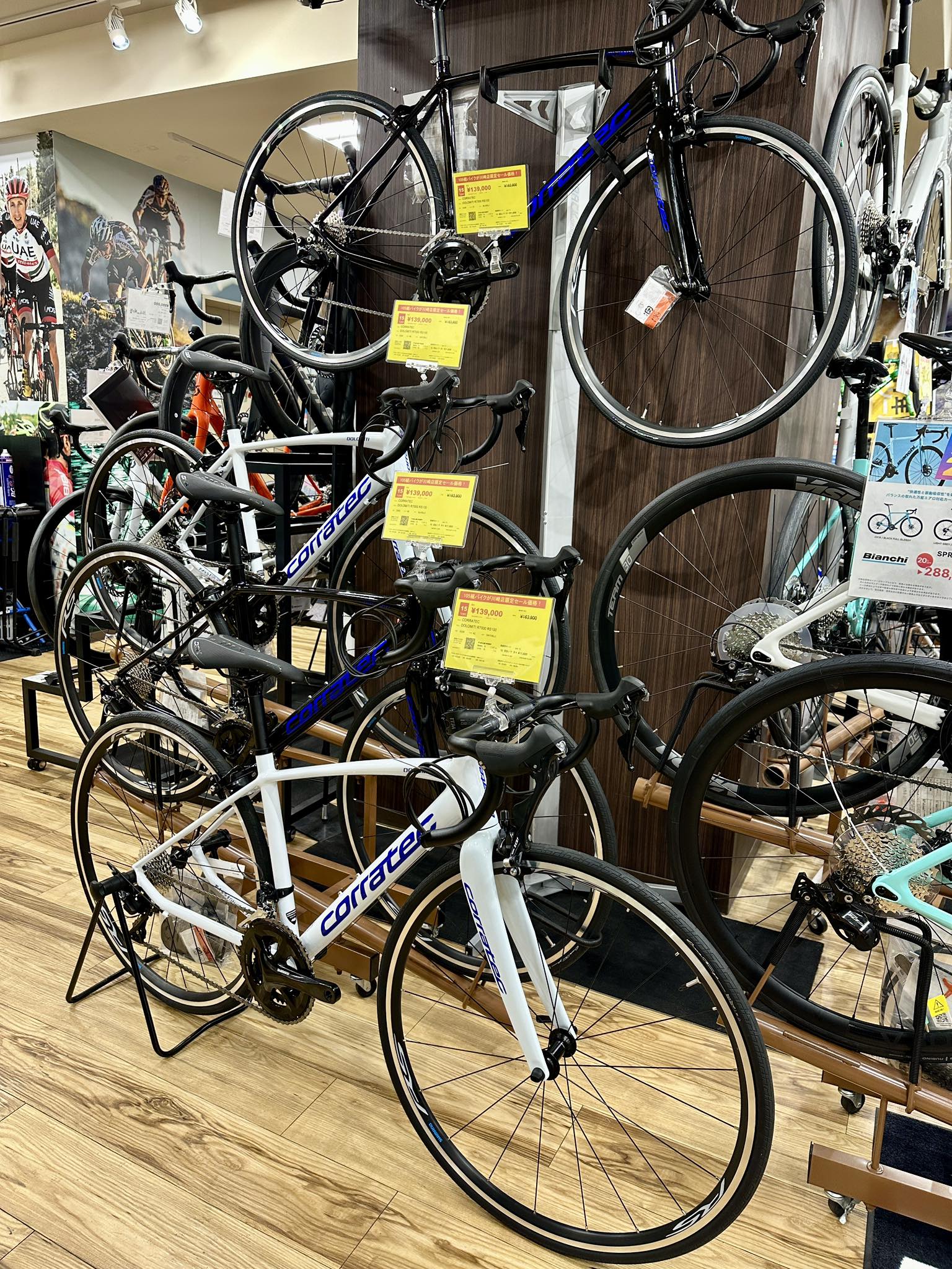 川崎店ではロードバイクのコーナーを広く展開しています。