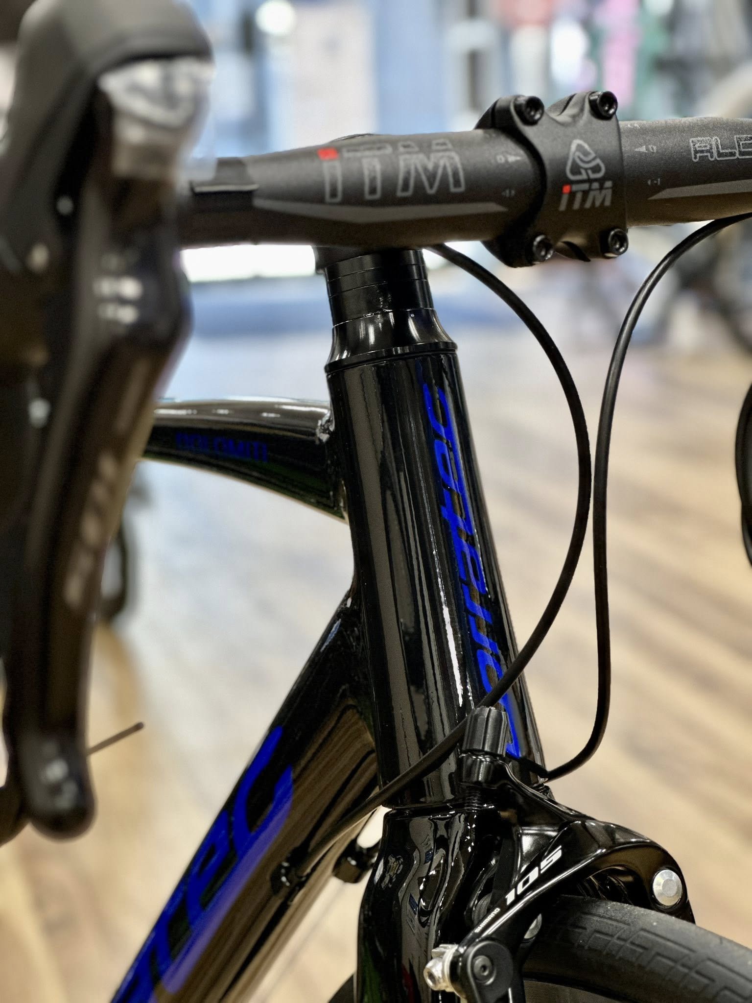 シマノ105搭載で、快適かつ確実な変速と制動が可能です。