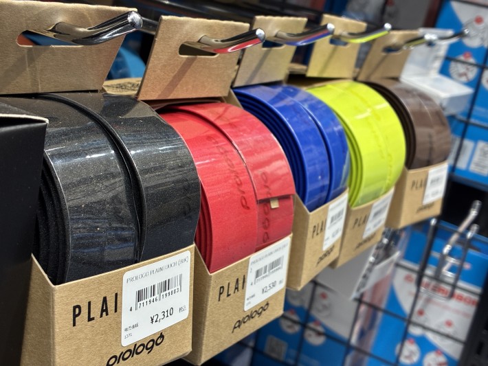 川崎店では、サドルはもちろん、カラフルなバーテープもご用意しています。