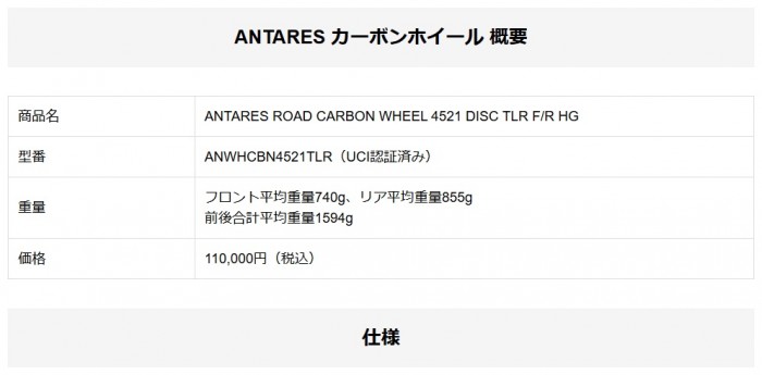 試乗ホイール ANTARES ROAD CARBON WHEEL 4521 DISC TLR