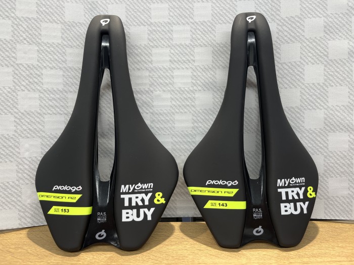 川崎店では上述した「Prologo」主要モデルのテストサドルを常時ご用意。無料でレンタルできます。