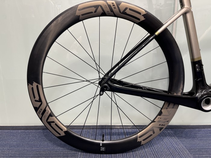 ホイールはENVE SES 4.5で、デカールもフレームと同色のカラーに、特別ロゴ仕様とフレームだけでなく、所有欲を存分に満たしてくれますね!