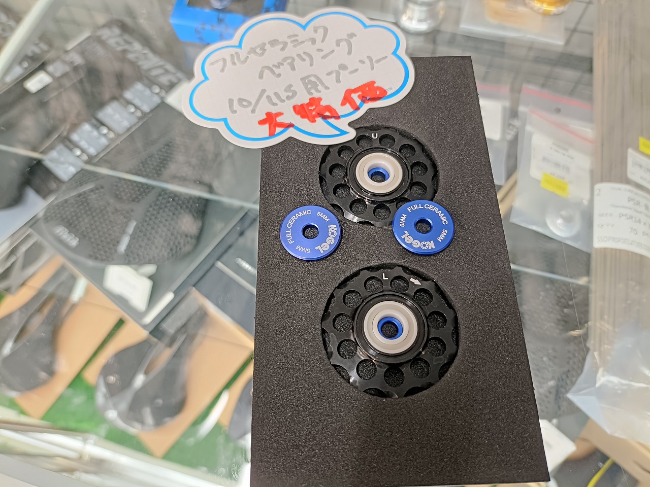 ホイールコーナーガラスケース内に