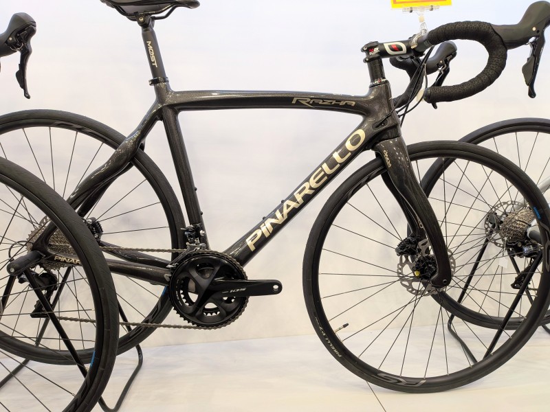 PINARELLOのスーパーハイエンドモデルDOGMAがF8、F10、F12、F、とFを冠するようになる前のDOGMA 65.1時代のシルエットを持つRAZHA、このフレーム形状は未だに根強い人気があり、PRINCEやPRINCE FXのご予算でRAZHAを選び差額分をカスタムに充てるなんてお客様もいるほどに人気のシルエットでしたよ!