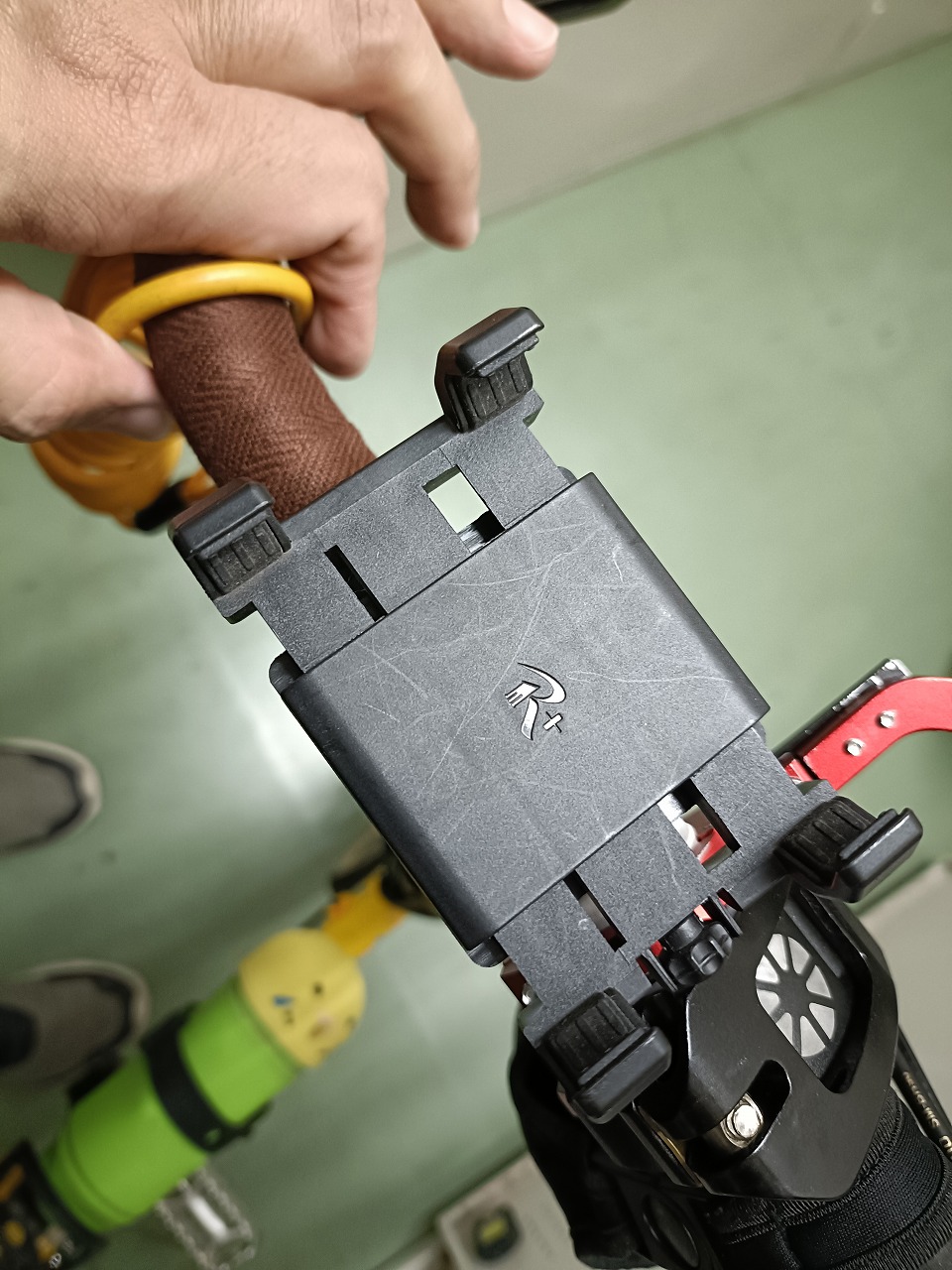 REC MOUNT PLUSの汎用スマートフォンホルダー(12R-HOLDER2)を軸に揃えてます。