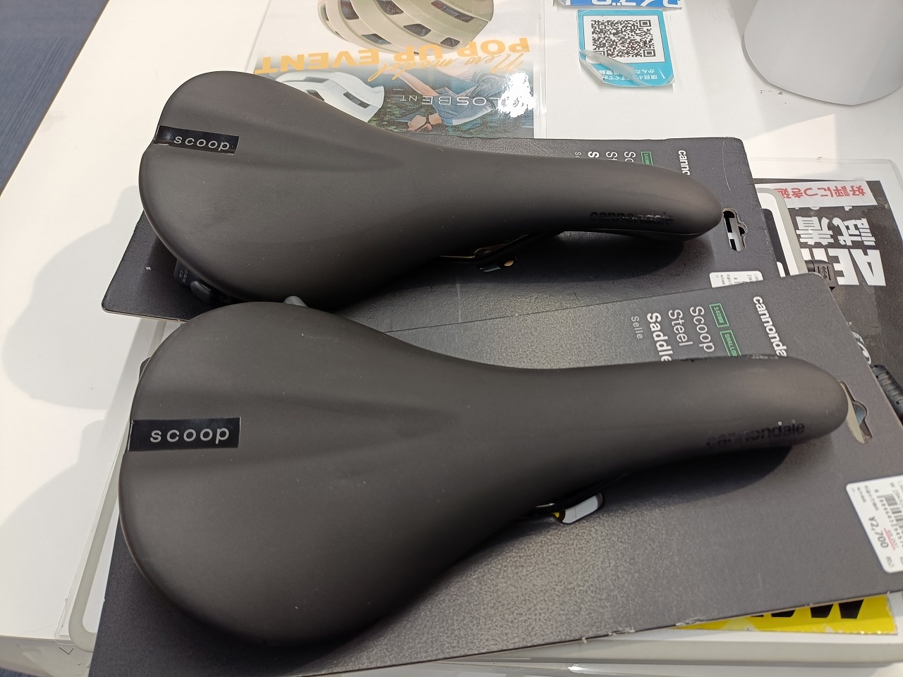 写真奥:RADIUS サドル 写真手前:SHALLOWサドル