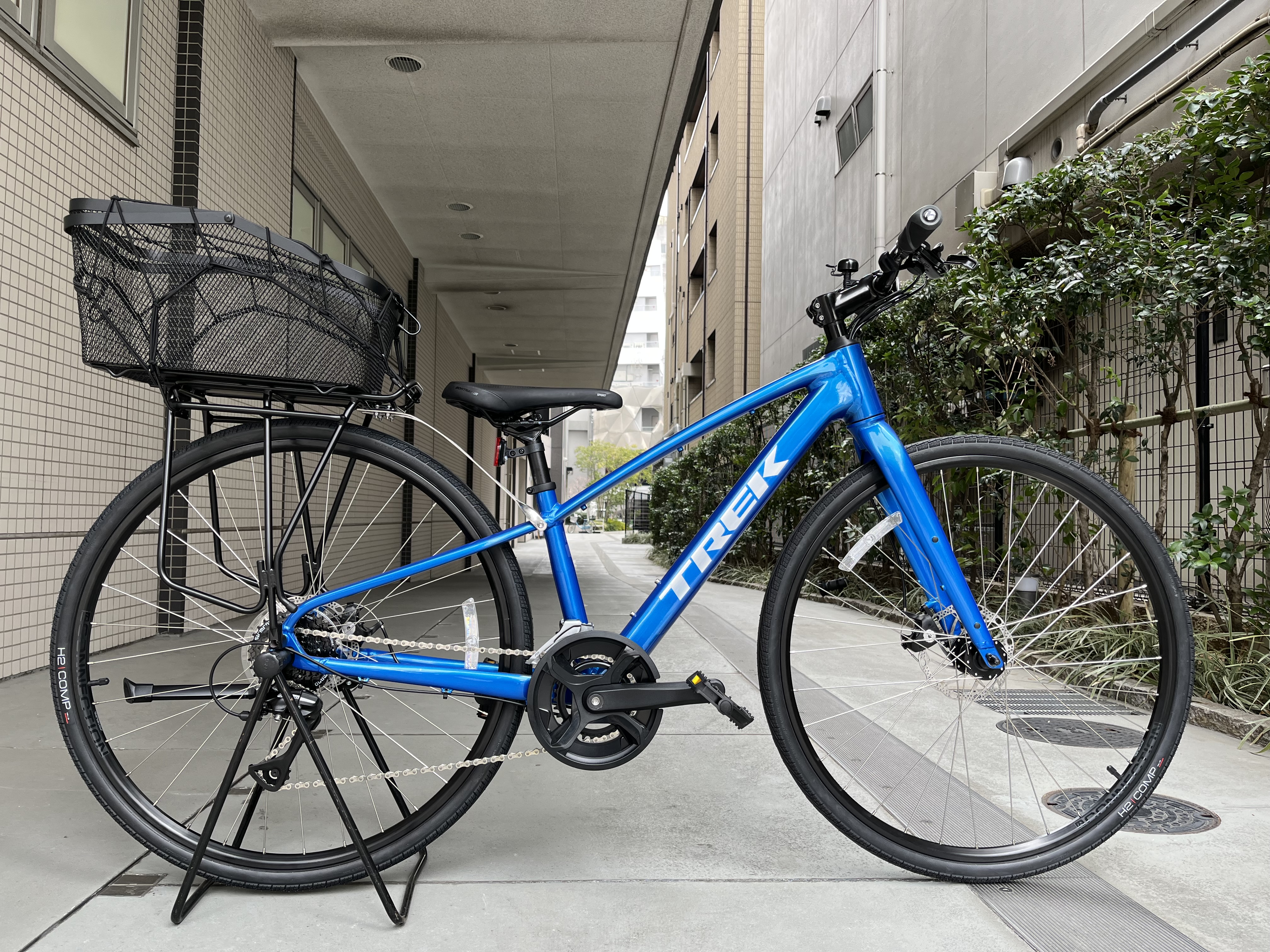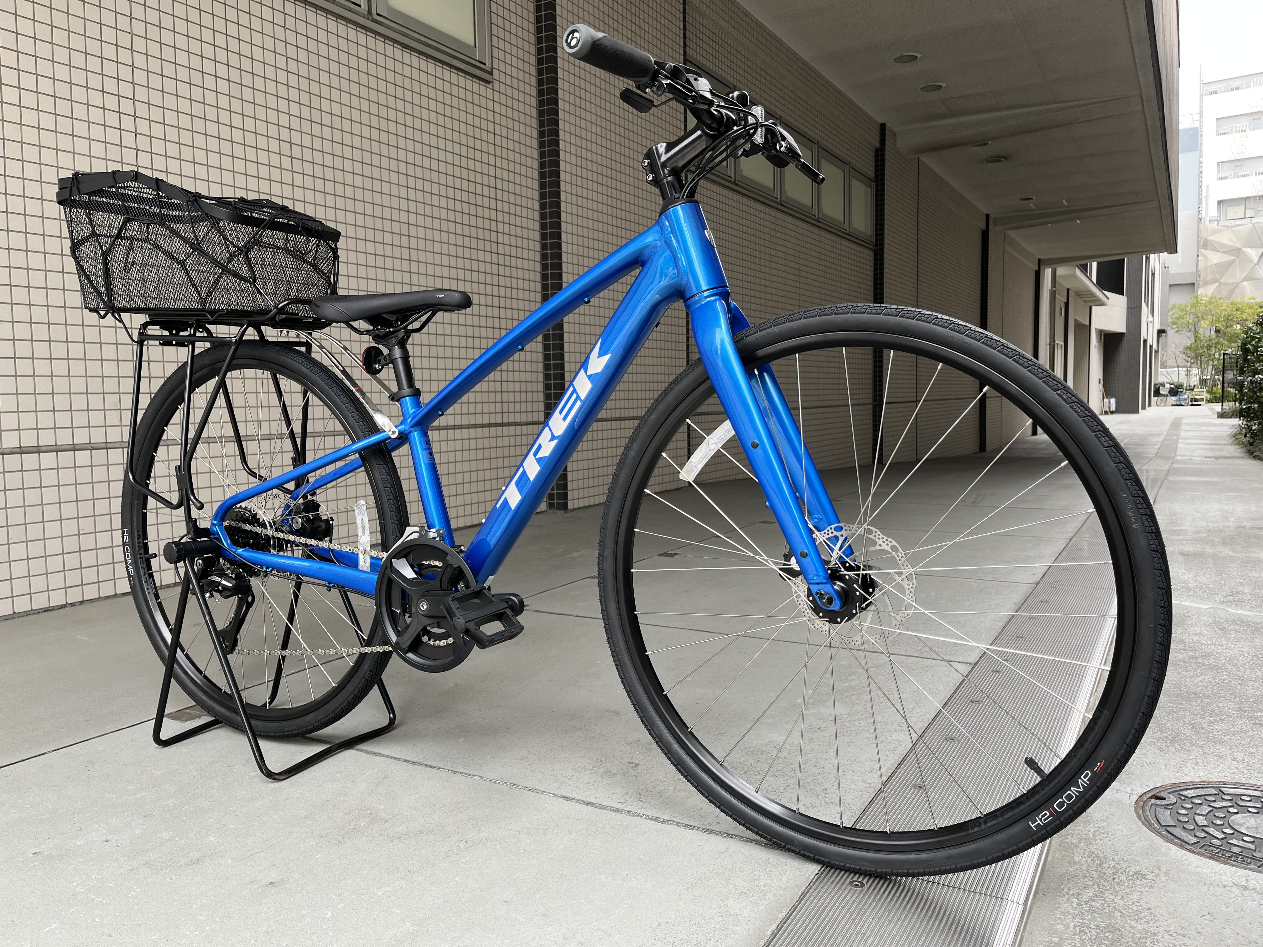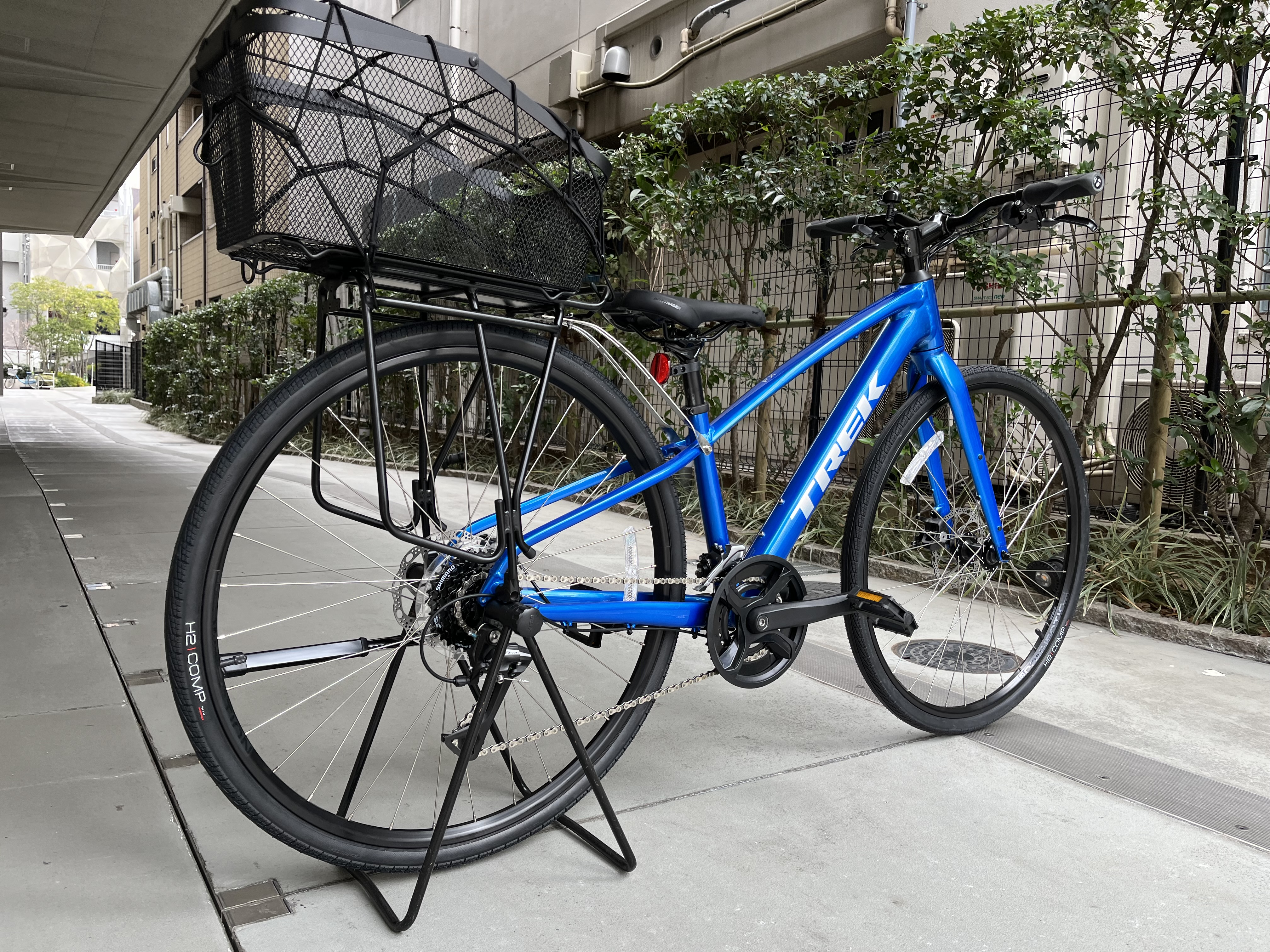 クロスバイクに後ろカゴを取り付けました。