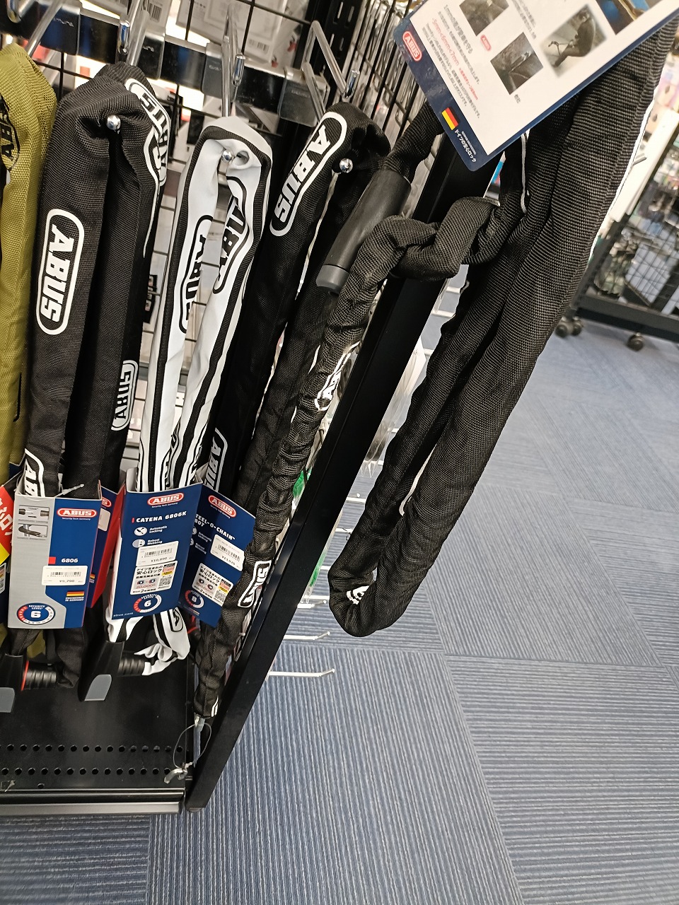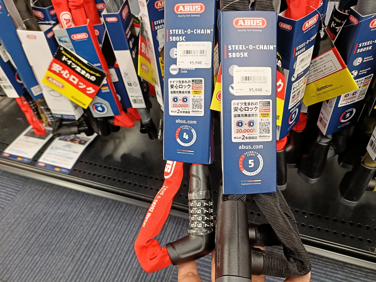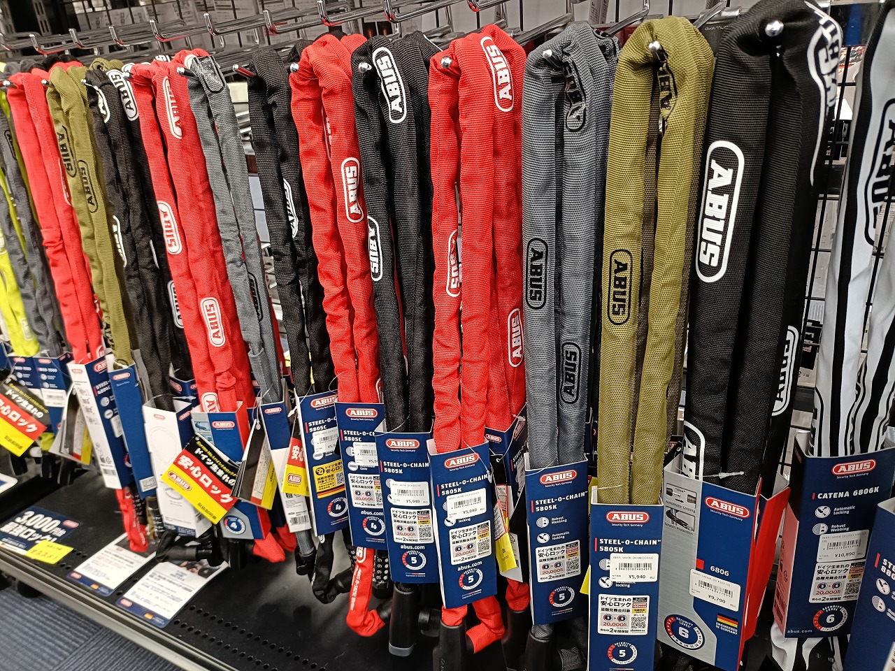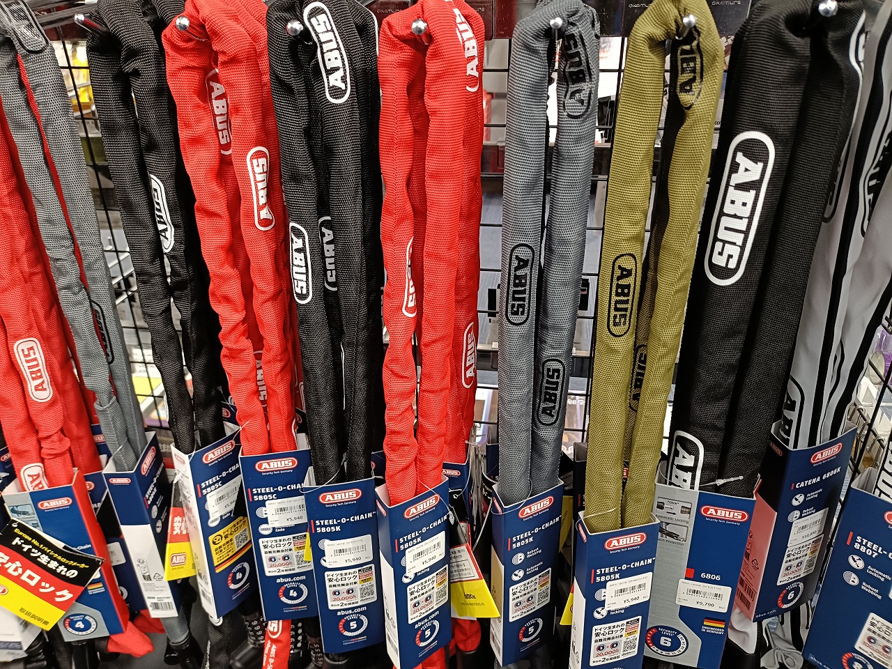 ABUS 5805は、焼入れスクエアチェーンによる高い耐切断性・地球ロック対応の110cm・肩掛け可能な携帯性を5,940円(税込)でまとめたコストパフォーマンスの高いチェーンロックです。当店スタッフが実際に切断作業を経験した立場からも、「この価格帯でこの硬さは本物」と自信を持っておすすめできる一本です。愛車の防犯対策の第一歩として、ぜひ手に取ってみてください。