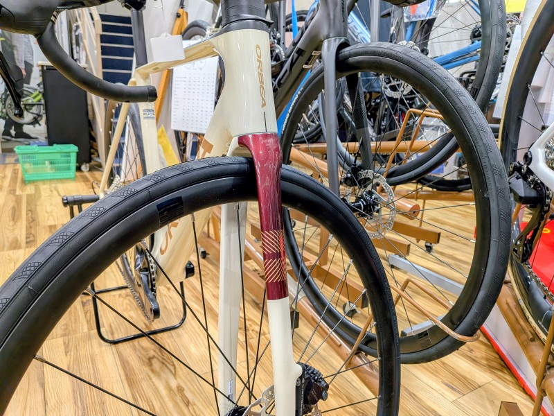 空力に特化したORCA AEROとは対照的に丸みを帯びたボリューミーなダウンチューブ、ボトムブラケット付近は極太です!ペダリングの受け皿となるボトムブラケット周りやダウンチューブはしっかりと剛性を確保する形状となっています!