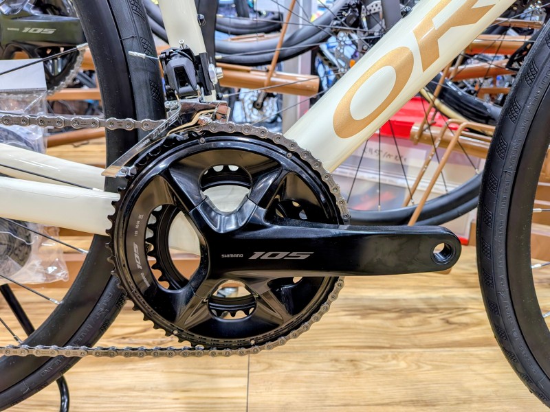 メインコンポーネント:SHIMANO 105(機械式変速12S)