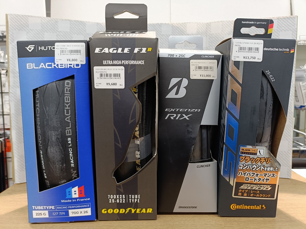 今回は現在YsRoad川崎にて在庫中のハイエンドタイヤ4本を比較紹介します。レース志向の方から、週末のロングライドを楽しむホビーライダーまで、用途別におすすめをまとめましたので、ぜひタイヤ選びの参考にしてください。