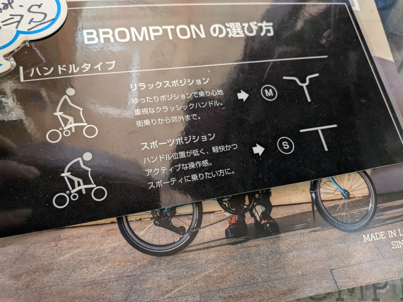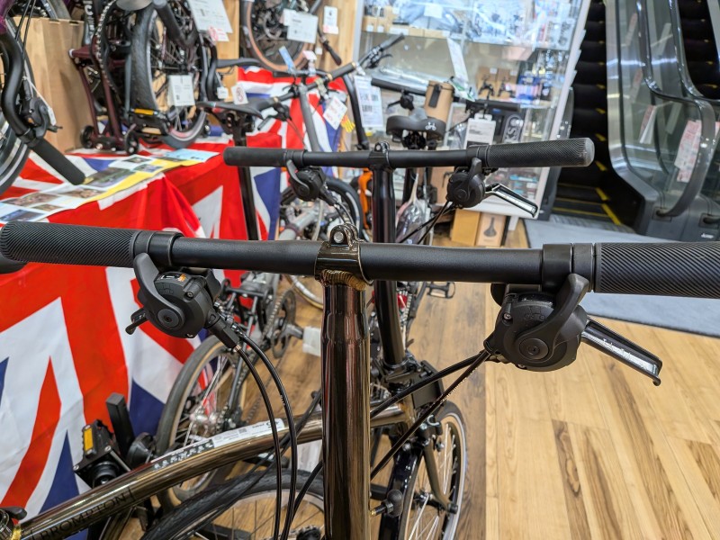 クロスバイクなどスポーツバイクでよく見かけるフラットハンドル形状、ブロンプトンの場合他にMハンドルがありますが、フラットなハンドル形状のSハンドルは自然とスポーティな乗車姿勢になるため、サイクリングも用途に含まれる方に選ばれる傾向があったり、前傾姿勢ととることに慣れているロードバイク乗りの方のセカンドバイクとして選ばれやすいです!