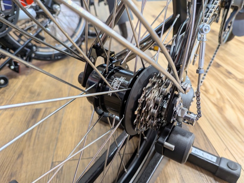 変速の違いや価格以外にも年式が異なることでの違いがございます!細かく挙げるとチェーンが違うとかフロントホイールのハブの仕様が違うとか、リア三角の造りが異なりリアフレームにまつわるパーツ類に違いや互換が無いことなどなどありますが、見た目の部分でも異なるポイントがあります!