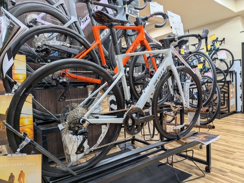 そして現在ワイズロード川崎店ではSCOTT POP-UP RALLYを開催中!メーカーさんより試乗車と展示車をお借りしていて、今回ご紹介の新型ADDICT (の40 105Di2グレード版、サイズXXS、S、Lの試乗車あり) もございますので、乗って試すことができますよ!開催期間は4月5日までとなっております!