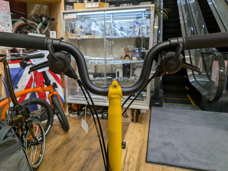 Mハンドル(Mid)はグリップの位置が高く上半身が起きた楽な乗車姿勢となります!Mハンドルはブロンプトンを象徴するシルエットのハンドル形状でもあります!