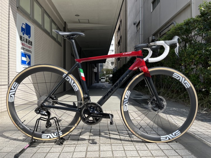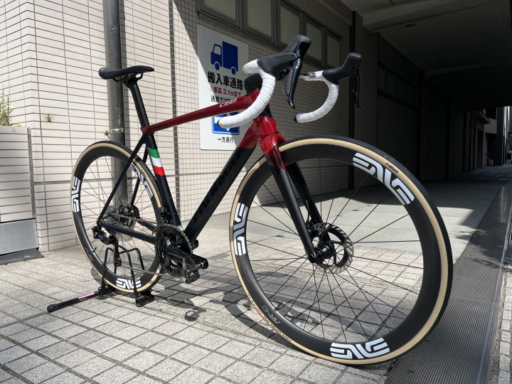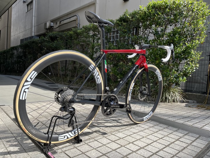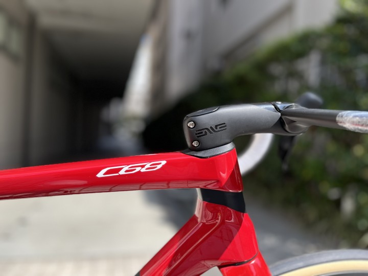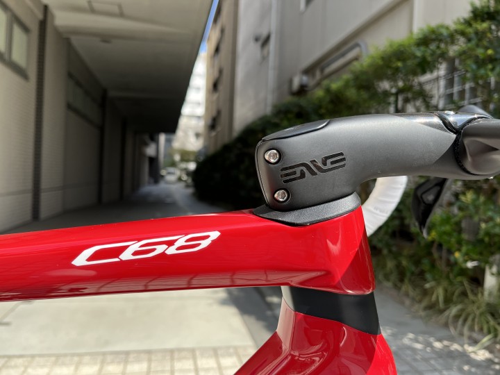 ハンドル・ステム・ホイールを ENVE で統一した妥協なく非常にかっこいい車体になりました。
