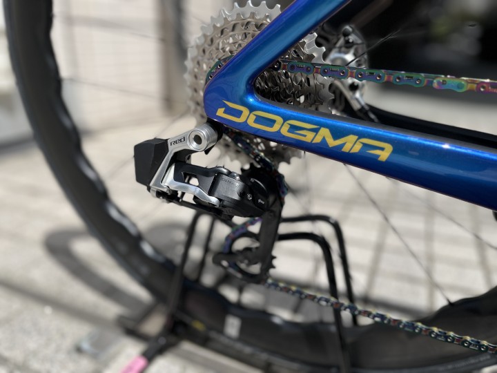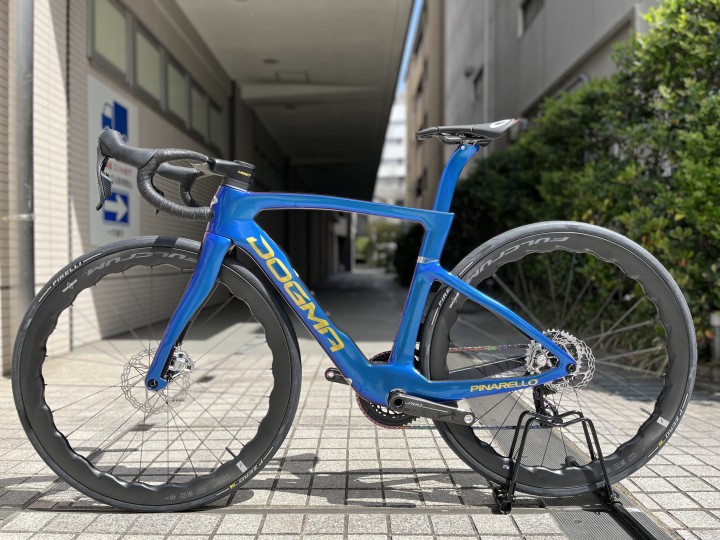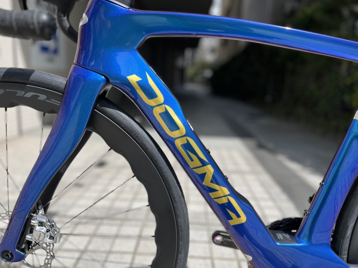 今回は鮮やかなブルーに高級感のあるゴールド・シルバーを組み合わせたMYWAYフレーム PINARELLO DOGMA F MY WAY を納車させていただきましたので紹介させていただきます。