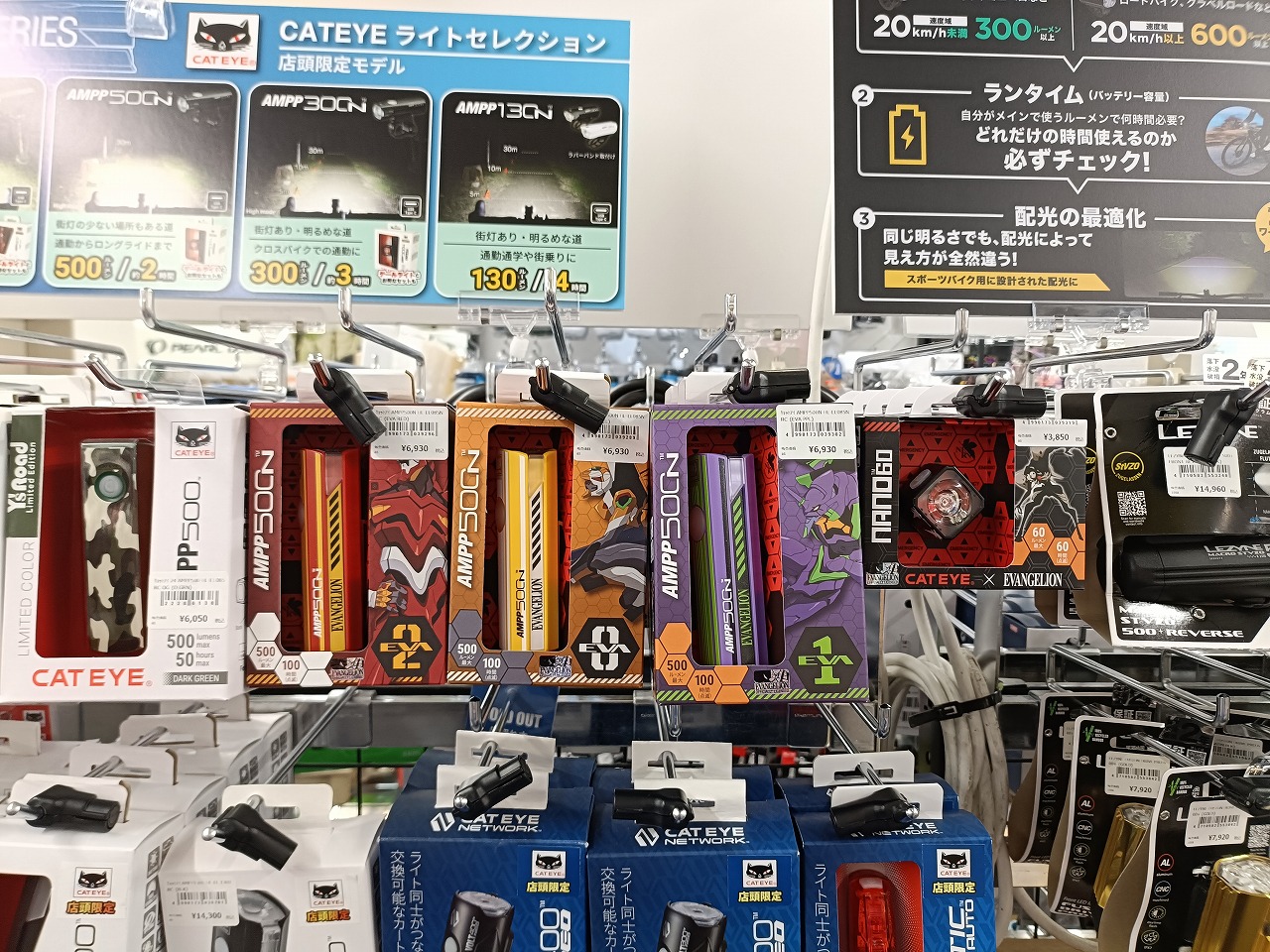 自転車ライトの国内最大手キャットアイから、人気アニメ「新世紀エヴァンゲリオン」とのコラボレーション限定モデルが登場。ワイズロード川崎店にも入荷しましたので、さっそくご紹介します。