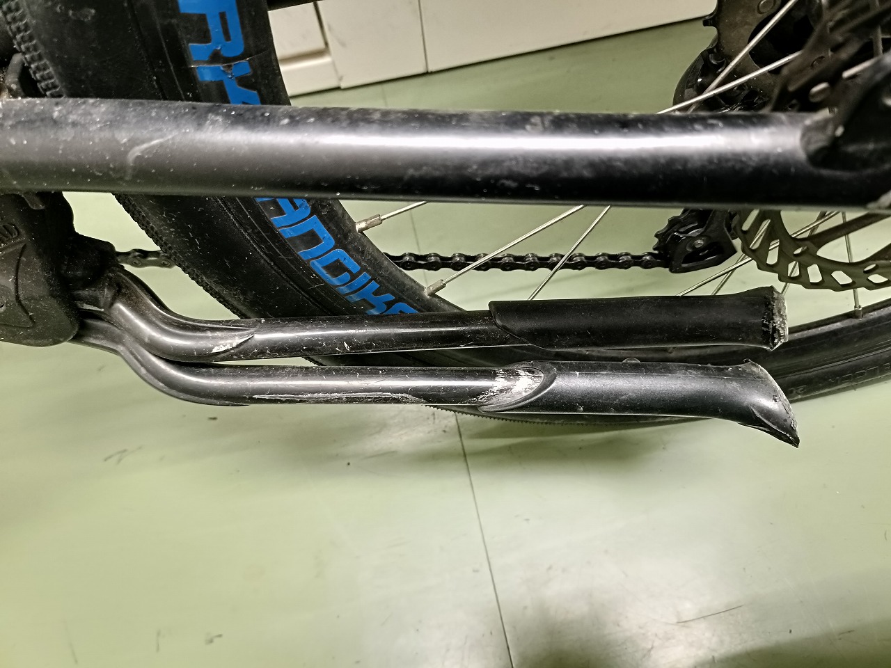 スタンドは消耗品です。ピボット部への定期的な注油で寿命を延ばせますが、スプリングや可動部の摩耗が進んだら交換が確実です。スポークへの接触は最悪スポーク破損にもつながるため、早めの対処をおすすめします。
