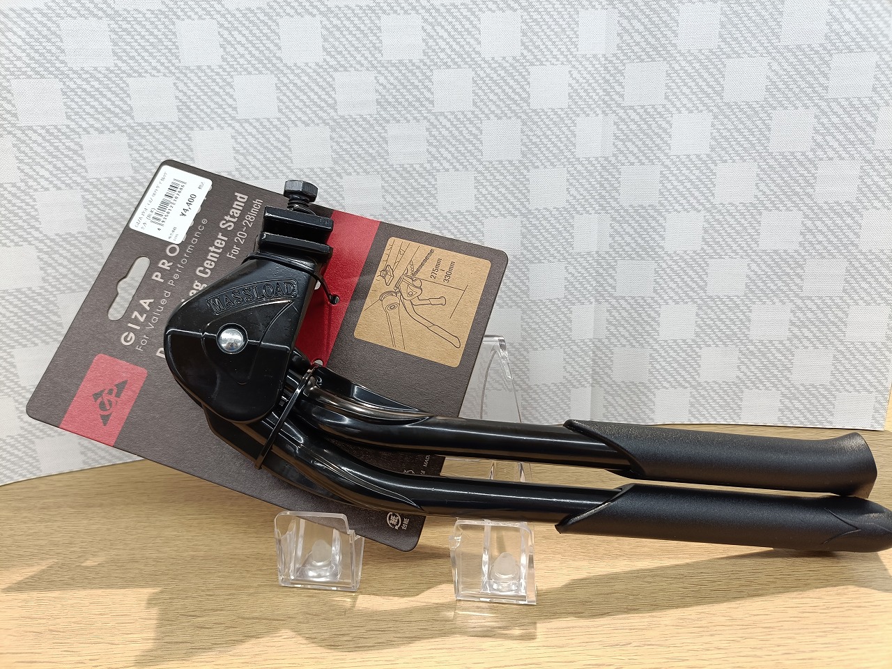 今回選んだのは前回使っていたのと一緒のGIZA PRODUCTS(ギザプロダクツ)「Adjustable Double Leg Center Stand CL-KA56」です。20〜28インチまで対応するサイズアジャスト機構付きで、フォールディングバイクからクロスバイクまで幅広く使えます。