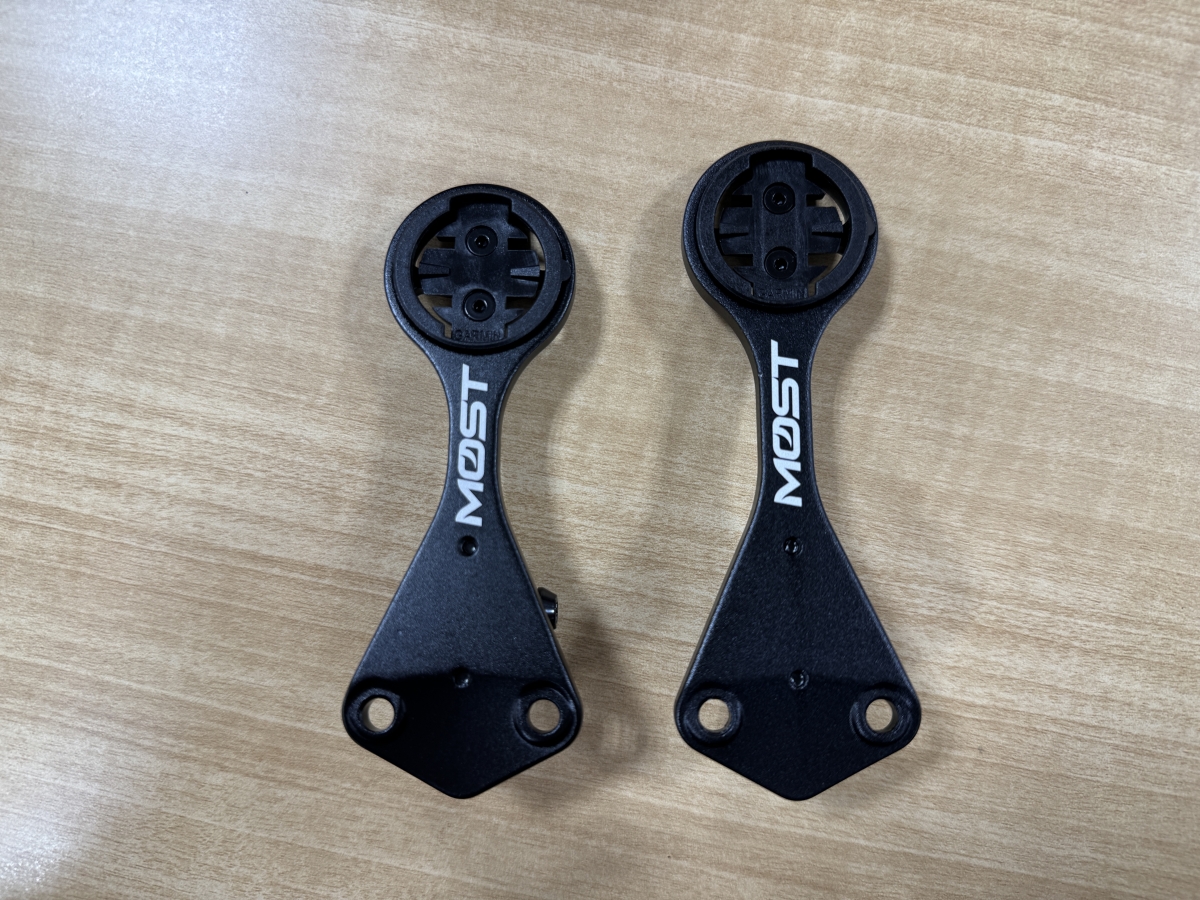 純正パーツのMOSTから専用マウントが販売されておりますが、サイクルコンピューターの大型化によりハンドルと干渉するモデルがちらほらと。