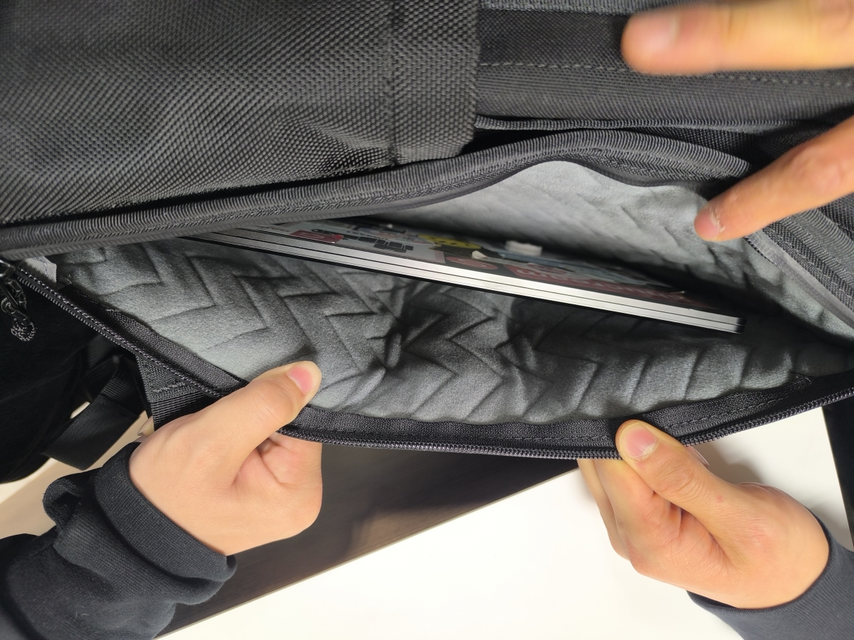 サイドジッパーでPCへのクイックなアクセスを提供するテックフレンドリーデザイン。