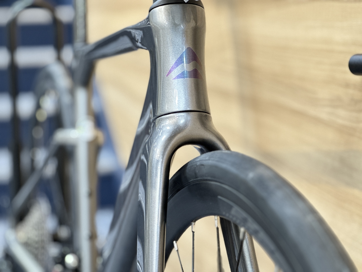 上位モデルのTEAM-Eとフレーム形状は変わらないため見た目も空力もバッチリ。CF3 Ⅳカーボンフレームを採用しており、硬すぎず柔らかすぎずを実現したロングライドにピッタリのフレーム剛性となっているため初心者の方でも自信をもってオススメできる車体だと思っています。