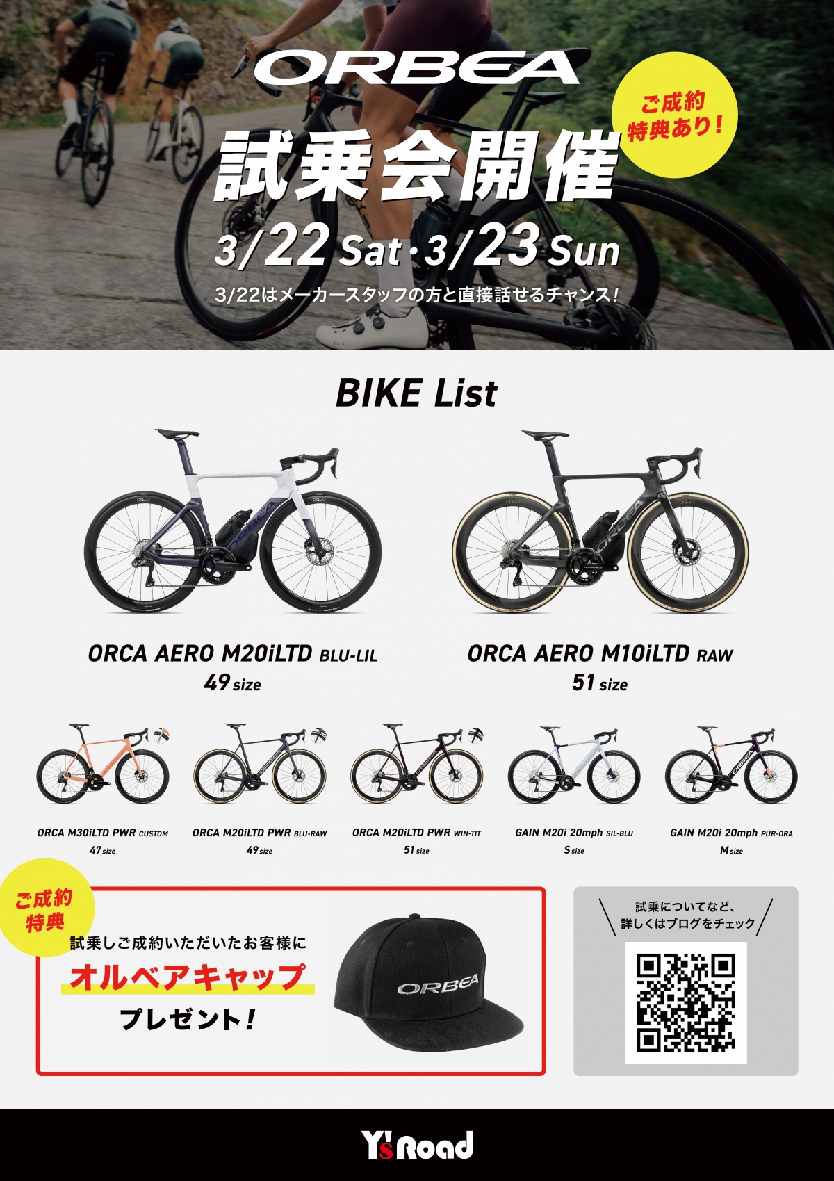 3月22日、23日にはORBRA試乗会を開催致します!是非ご検討している方は試乗してみてはいかがでしょうか!?